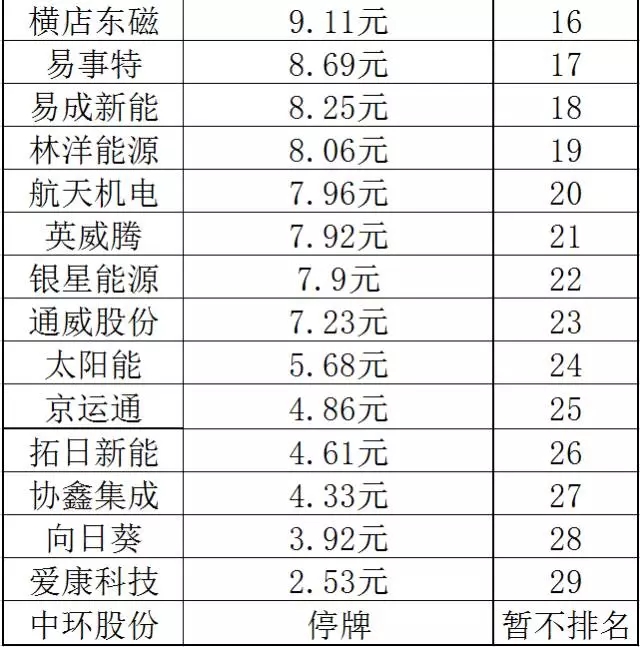 光頭君整理發(fā)現(xiàn),30家企業(yè)中股價排名第一是先導智能,而中環(huán)股份的股票自2016年4月25日開市起停牌。