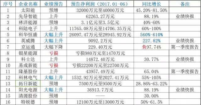 從凈利潤來看,不難發(fā)現(xiàn),大部分企業(yè)都有所增幅,增速最快的是科華恒盛,其漲幅高達560%至610%,其次是通威集團、英威騰。當然幾家歡喜幾家愁,銀星能源、易成新能、航天機電在2017年上半年度都處于虧損的狀態(tài)。