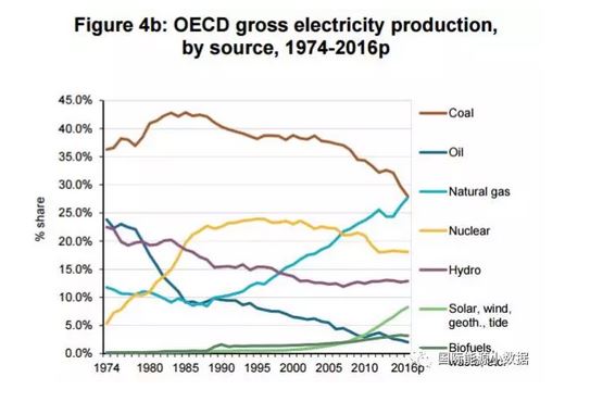 整體而言,2016年化石能源占經(jīng)合組織國(guó)家發(fā)電比例高達(dá)57.6%,其中煤電依然占27.7%,依然是最大的發(fā)電來(lái)源。