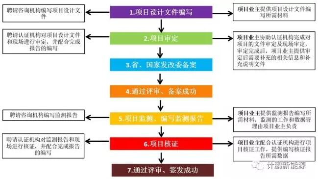 由于CCER項目申請需要準備的資料較多,部分類型項目的專業(yè)性較強,大部分項目業(yè)主不具備自主開發(fā)CCER項目的能力和人力,因此現(xiàn)在大多項目業(yè)主會聘請專業(yè)的咨詢機構,開發(fā)審定與核證項目。另外,業(yè)主還需聘請第三方審核機構,對項目申請材料進行審核,通過第三方審核的項目才可以報送發(fā)改委進行備案。一般開發(fā)流程如下圖所示: