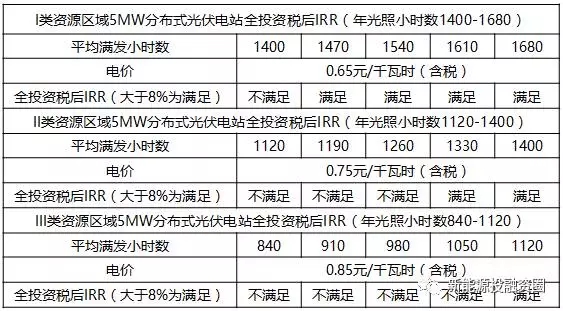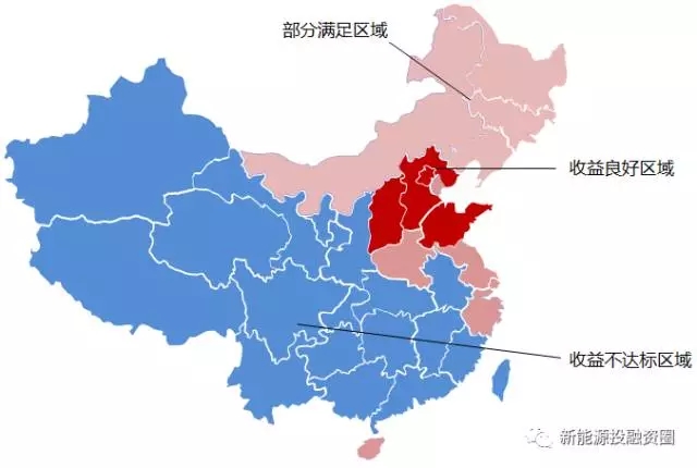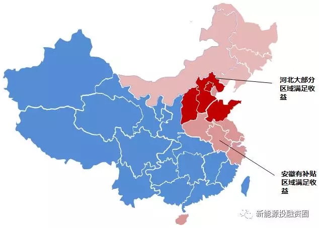 通過(guò)查詢各省市的資源情況可以選出下半年全額上網(wǎng)項(xiàng)目仍然滿足收益率的地區(qū),見(jiàn)下表。