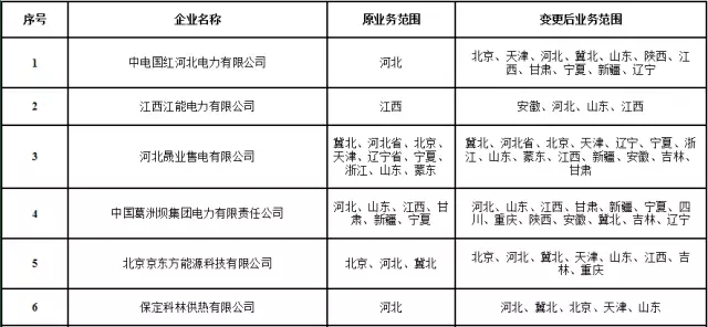 按照國(guó)家發(fā)改委、國(guó)家能源局《售電公司準(zhǔn)入與退出管理辦法》的要求,北京電力交易中心受理了下列售電公司的業(yè)務(wù)范圍變更申請(qǐng),對(duì)售電公司提交的變更申請(qǐng)材料進(jìn)行了完整性核驗(yàn),現(xiàn)將企業(yè)名單及有關(guān)情況予以公示。