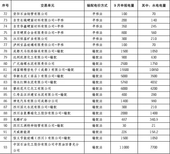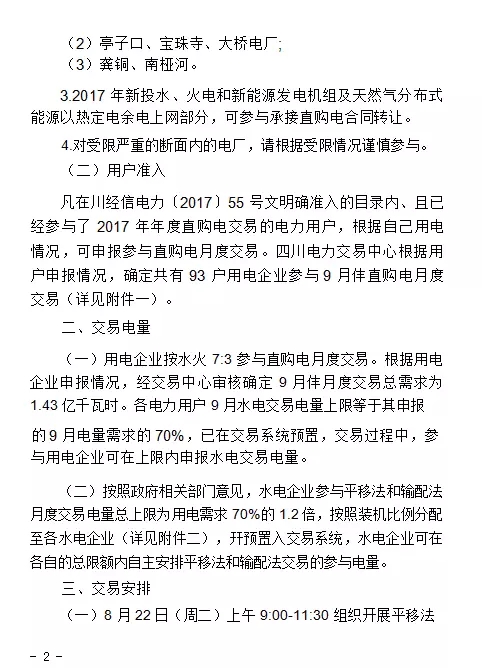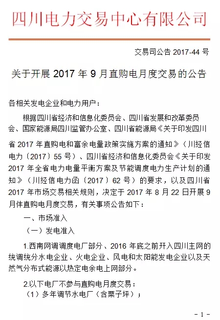 四川開(kāi)展2017年9月直購(gòu)電月度交易公告