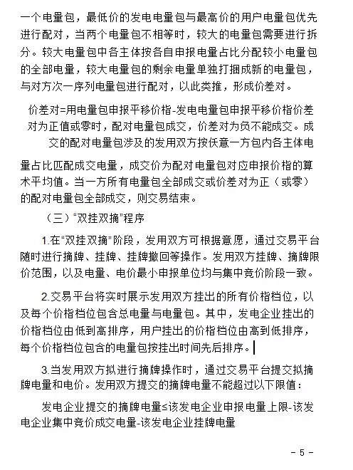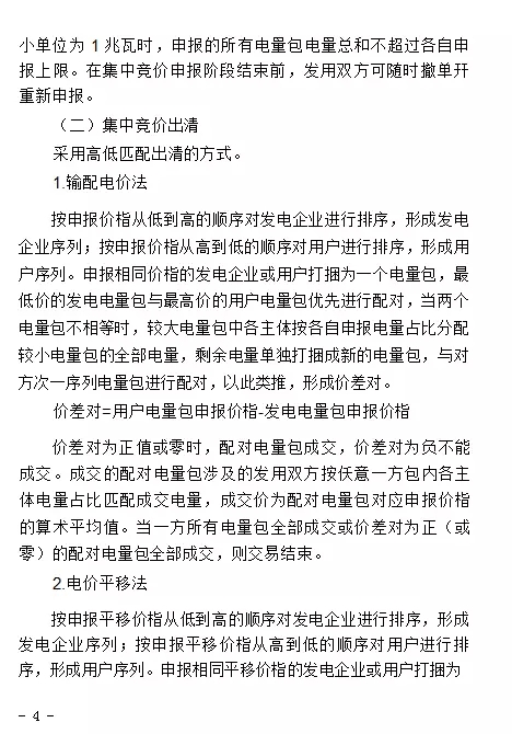 交易方式為雙邊協(xié)商和集中競(jìng)價(jià)。先開(kāi)展年度雙邊協(xié)商交易,再開(kāi)展年度集中競(jìng)價(jià)交易。集中競(jìng)價(jià)交易的出清計(jì)算按邊際出清價(jià)格統(tǒng)一確定交易價(jià)格。其中市外發(fā)電企業(yè)未成交的年度剩余市場(chǎng)化電量將按照集中競(jìng)價(jià)交易的成交出清序列中發(fā)電企業(yè)加權(quán)平均申報(bào)價(jià)差強(qiáng)制出清。