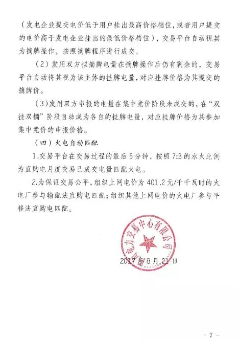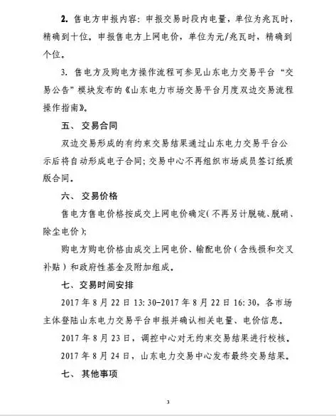 交易時(shí)間:通過(guò)交易平臺(tái)在2017年9月-12月開(kāi)展直接交易試點(diǎn)工作