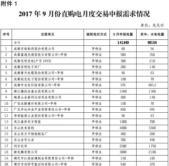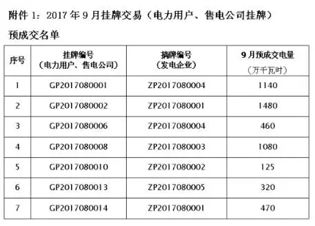9月掛牌交易(電力用戶(hù)、售電公司掛牌)預(yù)成交名單見(jiàn)附件1。