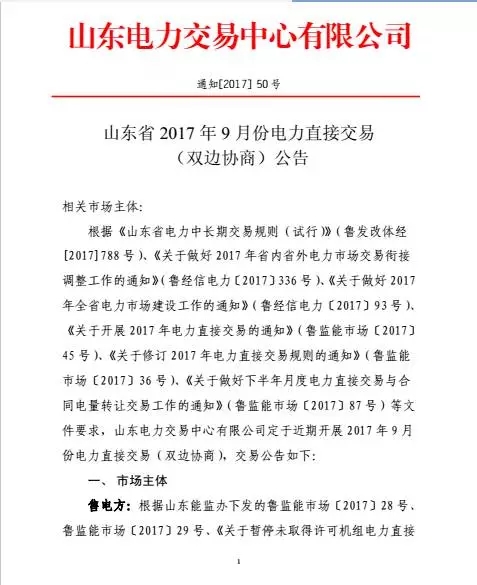 山東9月電力直接交易(雙邊協(xié)商)22日展開(kāi)