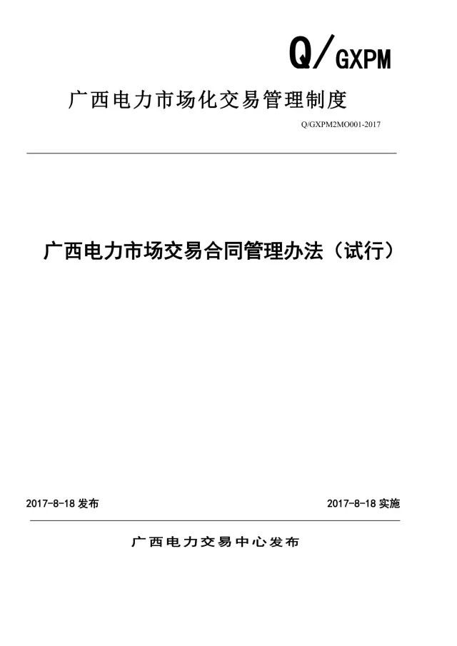 關(guān)于發(fā)布《廣西電力市場(chǎng)交易合同管理辦法(試行)》的通知