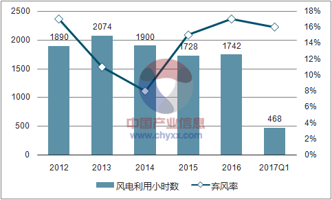 全國風(fēng)電利用小時(shí)數(shù)及棄風(fēng)率(%)