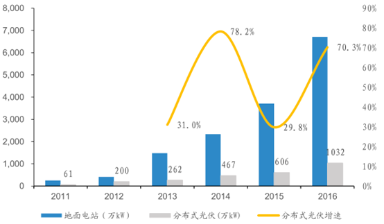 國家能源局公布了今年一季度光伏發(fā)電數(shù)據(jù),新增裝機(jī)量與 2016 年同期基本持平。其中集中式光伏新增裝機(jī)同比下降 23%,而分布式新增裝機(jī)同比增幅達(dá)到151%。且繼續(xù)呈大幅增長趨勢(shì)。