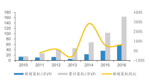 2016年中國海上風(fēng)電新增和累計(jì)裝機(jī)容量