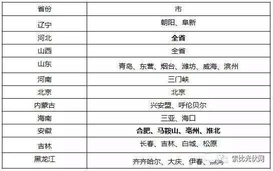 通過查詢各省市的資源情況可以選出下半年全額上網(wǎng)項(xiàng)目仍然滿足收益率的地區(qū),見下表。