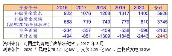 據(jù)王斯成介紹,截止到2016 年底 ,風(fēng)電和光伏補(bǔ)貼拖欠資金已經(jīng)達(dá)到500億元,最長(zhǎng)拖欠周期3 年; 根據(jù)不完全統(tǒng)計(jì),各個(gè)光伏企業(yè)被拖欠補(bǔ)貼資金少則幾億元,多則幾十億元。如果按照2020 年光伏累計(jì)裝機(jī)2 億kW ,則補(bǔ)貼資金缺口將超過(guò)3000 億元。