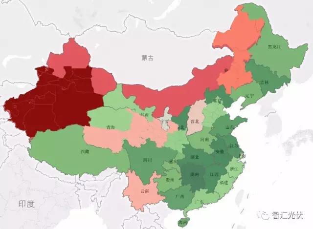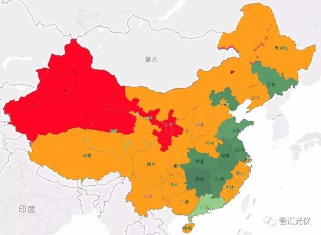 在不同省份的光伏投資風(fēng)險從3個維度衡量:保障小時數(shù)完成、消納風(fēng)險、新能源參與電力交易。根據(jù)這3方面,不同省份的光伏投資風(fēng)險如下圖。