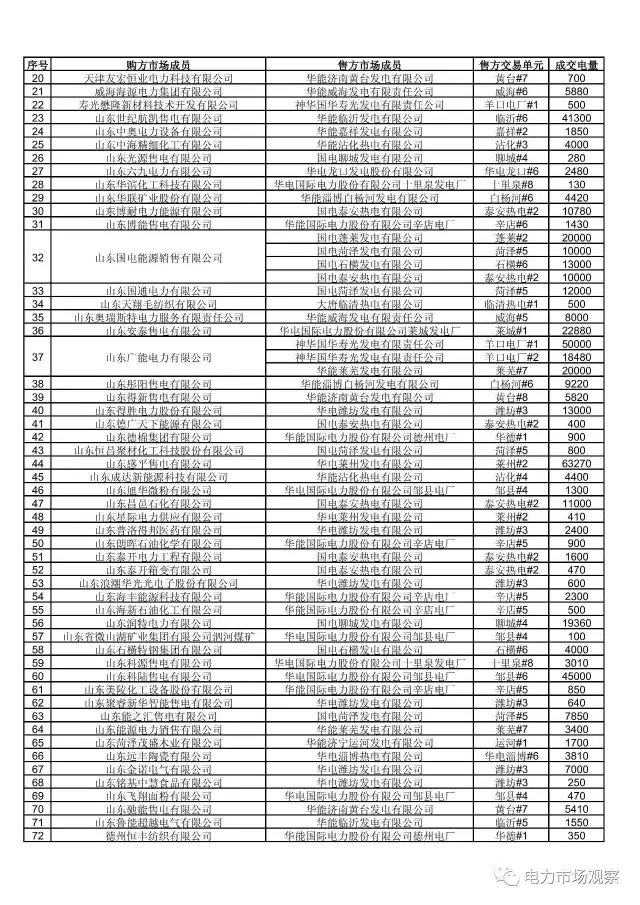 公告中稱:確認(rèn)38家統(tǒng)調(diào)發(fā)電企業(yè)(59臺發(fā)電機(jī)組)與48家電力用戶及53家售電公司達(dá)成交易電量22.8514億千瓦時(shí)。
