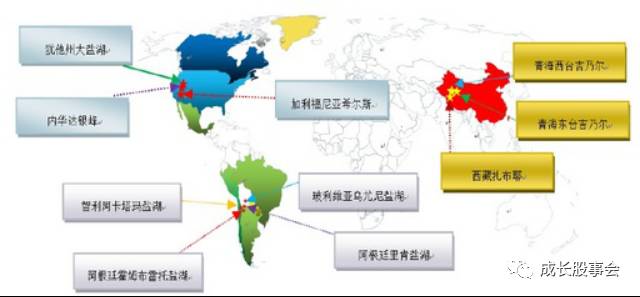 圖2:全球著名的鹽湖鹵水鋰礦分布圖