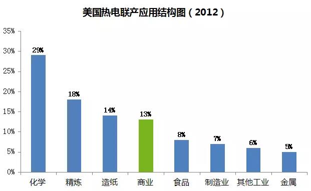 根據(jù)2012年美國熱電聯(lián)產(chǎn)安裝數(shù)據(jù)庫的統(tǒng)計,截止2012年底,美國工業(yè)和商業(yè)場所安裝的熱電聯(lián)產(chǎn)項(xiàng)目約4,200個,總裝機(jī)容量82.4GW。其中,工業(yè)領(lǐng)域的裝機(jī)容量占87%,有71%的熱電聯(lián)產(chǎn)項(xiàng)目以天然氣作為燃料。