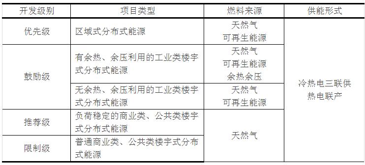 總體上,各級別分布式能源項(xiàng)目都要優(yōu)先選擇冷熱電三聯(lián)供,使能源利用效率最大化。不具備供冷條件或不需要供冷的,鼓勵建設(shè)熱電聯(lián)產(chǎn)項(xiàng)目。一般情況下,不建議開發(fā)電力單供的分布式能源項(xiàng)目。