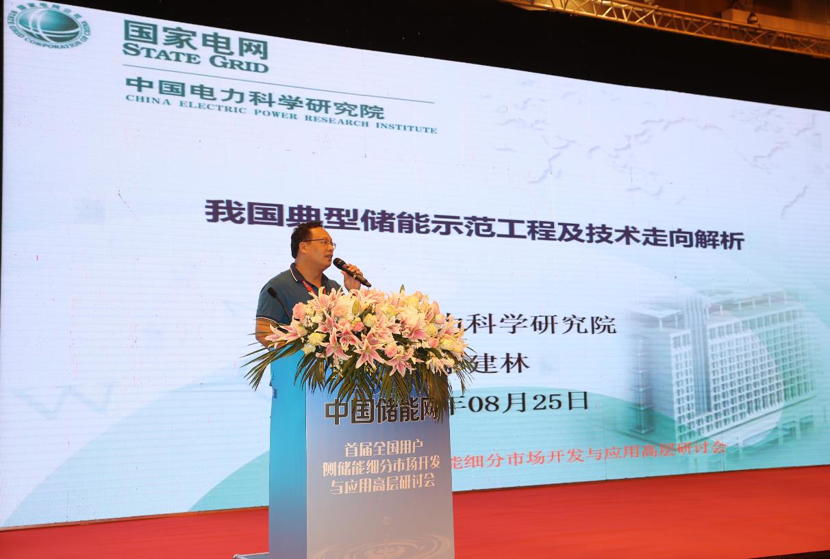 8月25-26日,首屆全國(guó)用戶側(cè)儲(chǔ)能細(xì)分市場(chǎng)開發(fā)與應(yīng)用高層研討會(huì)在江蘇無錫太湖飯店召開。會(huì)議由江蘇省電機(jī)工程學(xué)會(huì)、國(guó)網(wǎng)江蘇省電力公司電力科學(xué)研究院、全國(guó)微電網(wǎng)與分布式電源并網(wǎng)標(biāo)準(zhǔn)化技術(shù)委員會(huì)、中國(guó)化學(xué)與物理電源行業(yè)協(xié)會(huì)儲(chǔ)能應(yīng)用分會(huì)聯(lián)合主辦。會(huì)議吸引了國(guó)內(nèi)近400位學(xué)術(shù)和行業(yè)專家及企業(yè)高層代表參會(huì)。中國(guó)電科院電工所教授級(jí)高工李建林在本次會(huì)議上,就“我國(guó)典型儲(chǔ)能示范工程及技術(shù)走向”發(fā)表演講。