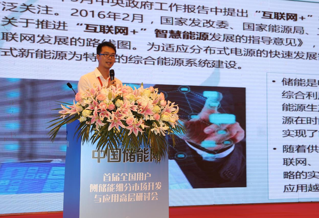 中國儲能網(wǎng)訊:8月25-26日,首屆全國用戶側(cè)儲能細(xì)分市場開發(fā)與應(yīng)用高層研討會在江蘇無錫太湖飯店召開。會議由江蘇省電機工程學(xué)會、國網(wǎng)江蘇省電力公司電力科學(xué)研究院、全國微電網(wǎng)與分布式電源并網(wǎng)標(biāo)準(zhǔn)化技術(shù)委員會、中國化學(xué)與物理電源行業(yè)協(xié)會儲能應(yīng)用分會聯(lián)合主辦。會議吸引了國內(nèi)近400位學(xué)術(shù)和行業(yè)專家及企業(yè)高層代表參會。中國電科院配電研究所徐毅虎在會議上,就“‘互聯(lián)網(wǎng)’+背景下的分布式儲能關(guān)鍵技術(shù)”發(fā)表演講。