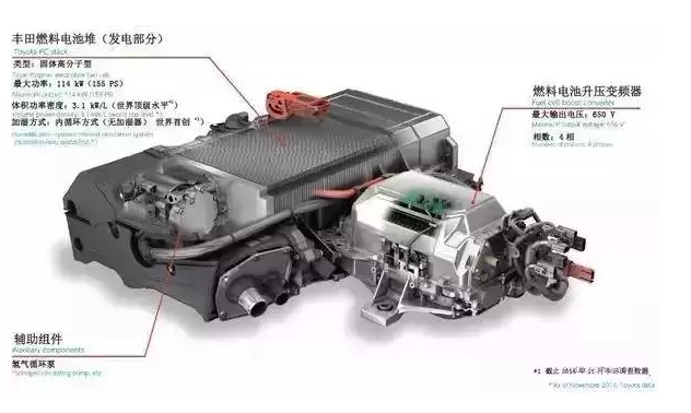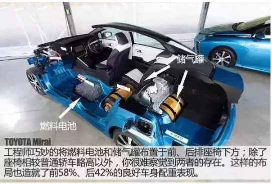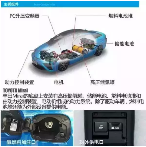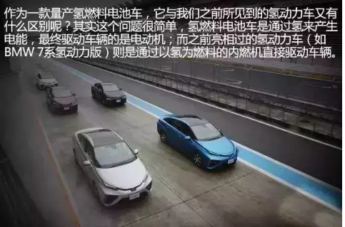 說回Mirai,作為一款量產(chǎn)的氫燃料電池車,它與我們之前所見到的氫動力車又有什么區(qū)別呢?其實這個問題很簡單,氫燃料電池車是通過氫來產(chǎn)生電能,最終驅(qū)動車輛的是電動機;而之前亮相過的氫動力車(如BMW7系氫動力版)則是通過以氫為燃料的內(nèi)燃機直接驅(qū)動車輛。