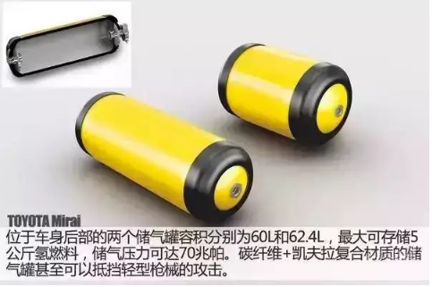 作為氫燃料電池車,首先要考慮的肯定是氫燃料的存儲安全。我們可以看到在這方面豐田確實下了很大的功夫,兩個特制的儲氣罐最大可承受70兆帕的壓力;而碳纖維凱夫拉(防彈衣面料)外殼的使用足以抵擋輕型武器的攻擊,當然相信也很少有人會對Mirai下此毒手。