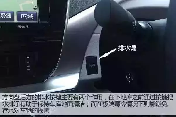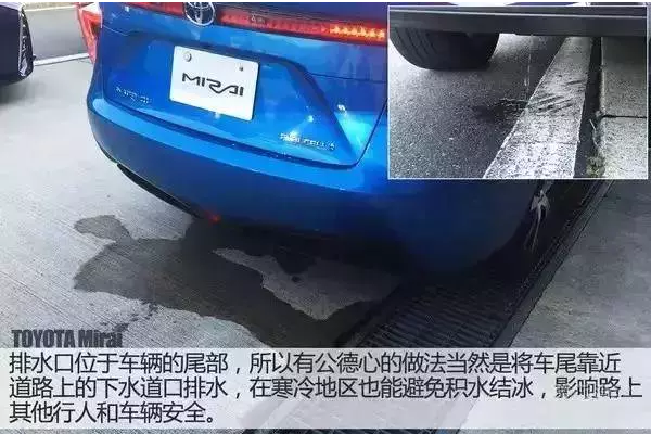 氫燃料通過氧化反應釋放電能后,所產(chǎn)生的排放物是水;那么作為液態(tài)的排放物,解決“排在哪”的問題也就成了工程師們需要考慮的問題之一。在這臺豐田Mirai的車內(nèi)我們看到了一個標著“H2O”字樣的按鍵,按下它便可通過車尾的管路排出水,當然我們也希望看到如果氫燃料能普及,在大街上能出現(xiàn)回收這些水的裝置。