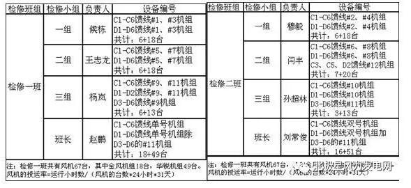 (2)各部門將管理職責(zé)繼續(xù)細(xì)化,分配至各小組以及個(gè)人。下面以設(shè)備管理部發(fā)電主要設(shè)備風(fēng)力發(fā)電機(jī)組為例,按照專業(yè)和小組進(jìn)行了管理職責(zé)劃分。生產(chǎn)現(xiàn)場(chǎng)設(shè)備管理部分為檢修一班和檢修二班,兩個(gè)檢修班組各有3個(gè)檢修小組組成,管轄設(shè)備按照單雙號(hào)進(jìn)行分配,例如:某一饋線1號(hào)風(fēng)機(jī)由檢修一班第一檢修小組負(fù)責(zé)管理工作,某一饋線2號(hào)風(fēng)機(jī)由檢修二班第一小組負(fù)責(zé)管理工作,以此類推。因?yàn)轱L(fēng)的不確定性,在內(nèi)對(duì)崗位的對(duì)標(biāo)工作中存在發(fā)電量等數(shù)據(jù)的對(duì)標(biāo),所以,設(shè)備沒有按照片區(qū)來劃分。