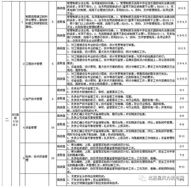 內(nèi)部對(duì)標(biāo)主要以同崗位管理指標(biāo)為主的小指標(biāo)對(duì)標(biāo),通過對(duì)生產(chǎn)運(yùn)行、設(shè)備管理、安全管理、培訓(xùn)教育、文明工作等方面,以具體的量化指標(biāo)為依據(jù),開展對(duì)標(biāo)工作。下面我們以設(shè)備管理中風(fēng)力發(fā)電機(jī)組管理指標(biāo)為例: