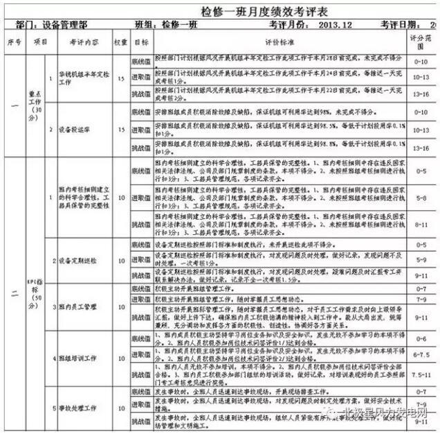 (2)檢修班組月度績(jī)效考評(píng)表