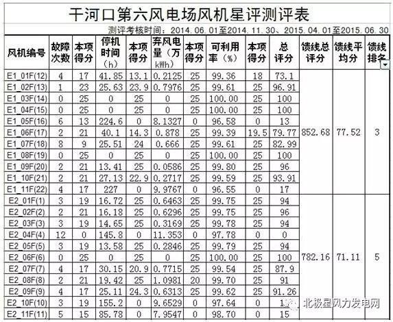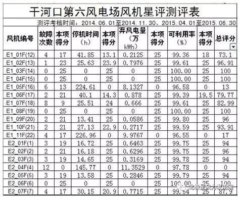(1)每臺(tái)風(fēng)力發(fā)電機(jī)組小指標(biāo)測(cè)評(píng)表