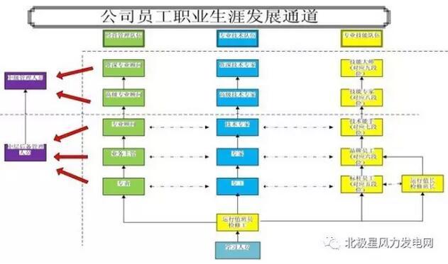 由于風(fēng)電場(chǎng)管理崗位有限,為了避免因人設(shè)崗,同時(shí)又要激勵(lì)員工發(fā)展、成長(zhǎng),讓員工的職業(yè)生涯規(guī)劃更加明確,公司創(chuàng)新開展員工職業(yè)發(fā)展第二條通道,具體內(nèi)容見下圖: