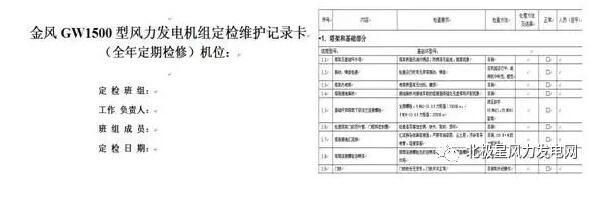 風(fēng)力發(fā)電機(jī)組定檢記錄卡: