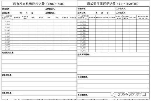 風(fēng)力發(fā)電機(jī)組巡檢記錄卡:
