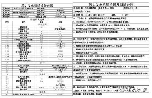 風(fēng)力發(fā)電機(jī)組設(shè)備技術(shù)臺(tái)賬: