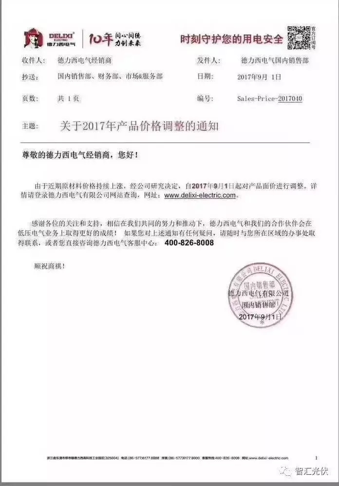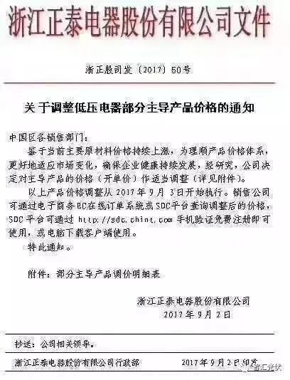 除了外資企業(yè)的產(chǎn)品漲價,內(nèi)資企業(yè)的產(chǎn)品價格也在漲!國內(nèi)電氣企業(yè)龍頭——正泰,產(chǎn)品全線漲價。