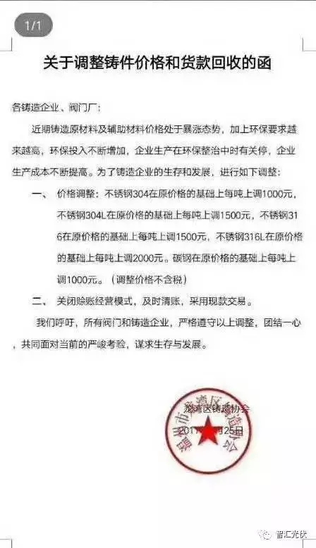 龍灣區(qū)鑄造協(xié)會的調(diào)價公函