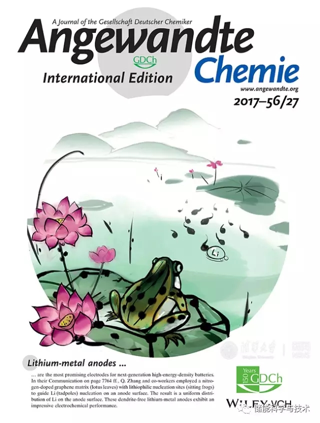 采用中國傳統(tǒng)國畫方式表述"親鋰位點(diǎn)定向形核"思想,通過形核調(diào)控金屬鋰負(fù)極的無枝晶生長,被《德國應(yīng)用化學(xué)》(Angewandte Chemie International Edition)選為該刊物封面。