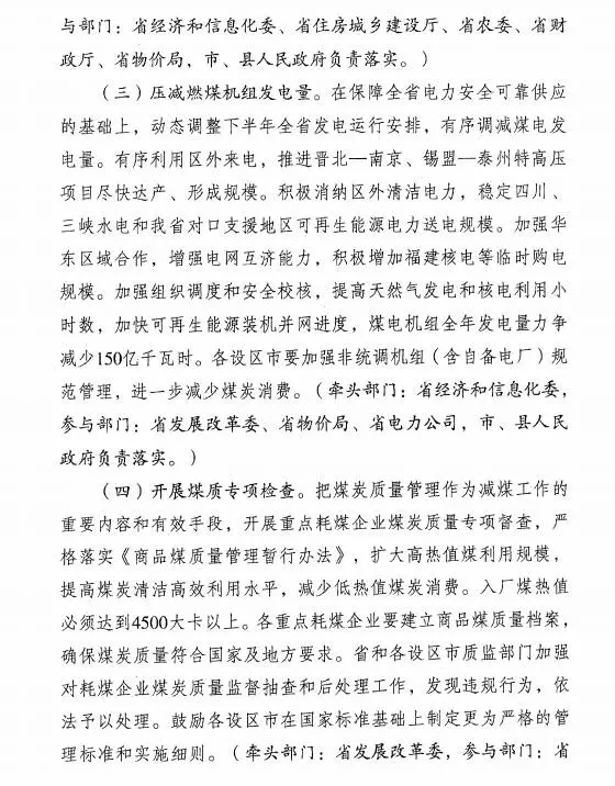 在保障全省電力安全可靠供應(yīng)的基礎(chǔ)上動態(tài)調(diào)整下半年全省發(fā)電運行安排,有序調(diào)減煤電發(fā)電量。加強組織調(diào)度和安全校核,提高天然氣發(fā)電和核電利用小時數(shù),加快可再生能源裝機并網(wǎng)進度,煤電機組全年發(fā)電量力爭減少150億千瓦時。