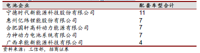 電池企業(yè)集中度有所下降,外企(合資)電池已開(kāi)始進(jìn)入目錄。據(jù)已披露數(shù)據(jù),第8批目錄中前十大電池廠配套車型104款,占比下降至55%,寧德時(shí)代保持領(lǐng)先地位,也是專用車是第一大配套企業(yè),此外億緯鋰能、國(guó)軒高科也在專用車中有較高占比。從第4 批開(kāi)始,三星、三洋能源、AESC 等外資或合資企業(yè)開(kāi)始進(jìn)入推廣目錄。