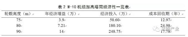 在機(jī)組安全運(yùn)行的基礎(chǔ)上,對(duì)機(jī)組加高塔筒技改經(jīng)濟(jì)性估算如表2所示,其中經(jīng)濟(jì)增益按照上網(wǎng)電量0.6元/千瓦時(shí)計(jì)算,經(jīng)濟(jì)投入為基于項(xiàng)目經(jīng)驗(yàn)的參考值。
