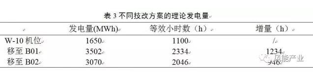 由表3可知,機(jī)組移至備用機(jī)位B01、B02的理論年發(fā)電量較原有機(jī)位可分別增加1852MWh和1420MWh,具有較大的發(fā)電量提升。