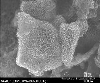 3D蜂窩結構石墨烯的場發(fā)射掃描電子顯微鏡(FESEM)圖像。該新型材料能夠取代染料敏化太陽能電池中的鉑金材料,而且輸出電力量并不會減少。