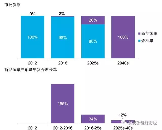圖:新能源車銷售市場(chǎng)份額預(yù)測(cè)及對(duì)應(yīng)年復(fù)合增長(zhǎng)率