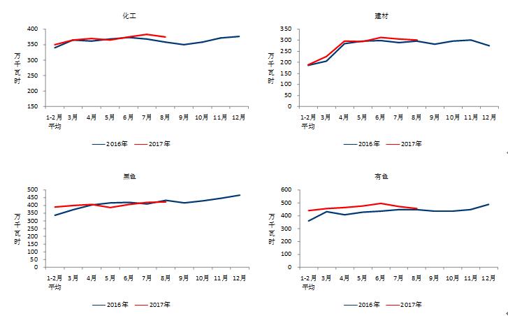 圖4 2016、2017年重點(diǎn)行業(yè)分月用電量情況