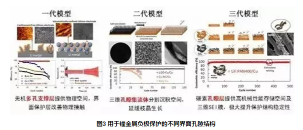 圖3用于鋰金屬負(fù)極保護(hù)的不同界面孔隙結(jié)構(gòu)