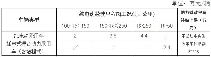 (一)新能源乘用車、插電式混合動力(含增程式)乘用車推廣應(yīng)用補(bǔ)貼標(biāo)準(zhǔn)如下: