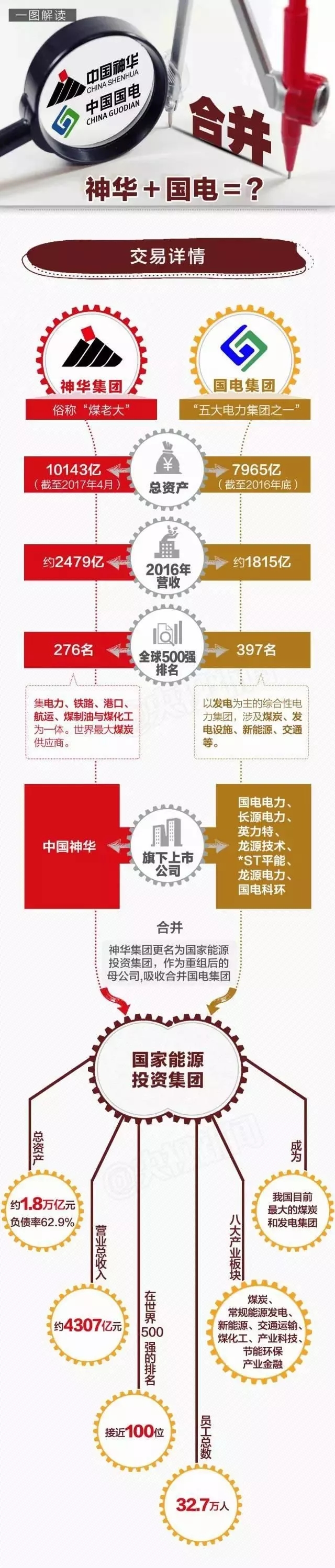 中國(guó)儲(chǔ)能網(wǎng)訊:國(guó)電與神華實(shí)施合并重組,定名為國(guó)家能源投資集團(tuán)有限責(zé)任公司,在能源央企中,僅次于中石油、國(guó)家電網(wǎng)和中石化,位列中國(guó)第四大能源央企。