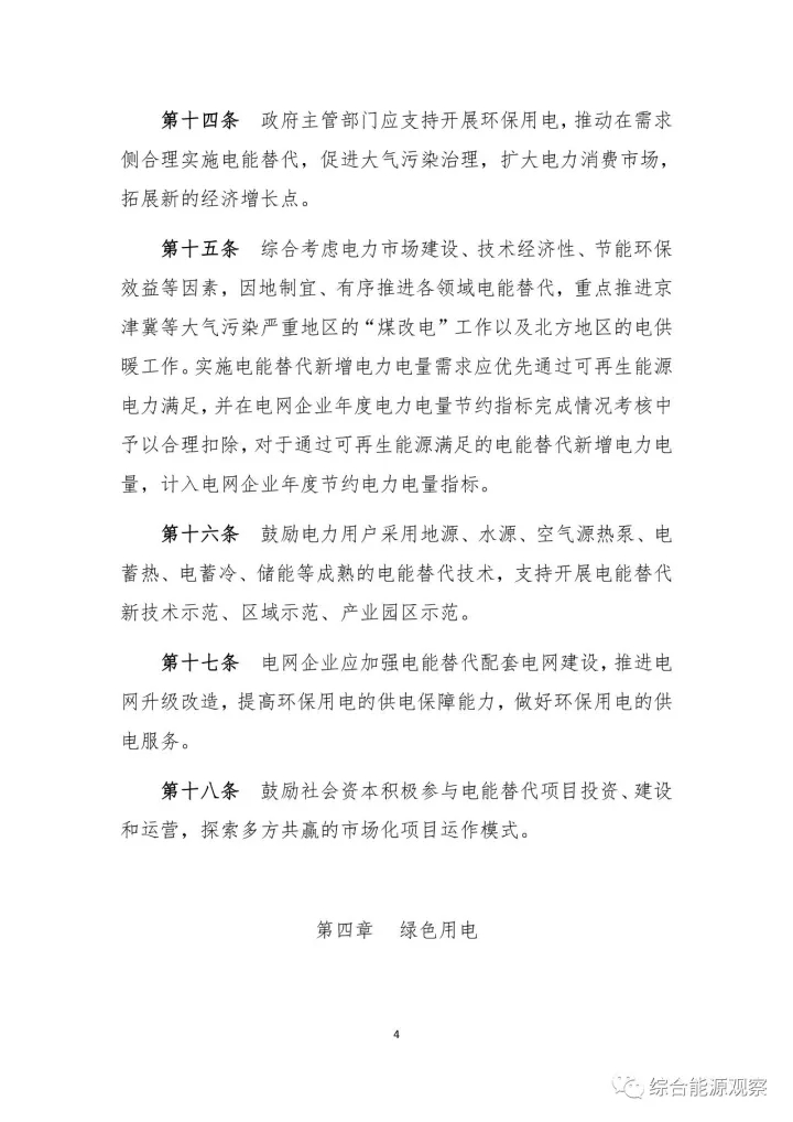 在2010年辦法基礎(chǔ)上,2017年辦法單列環(huán)保用電章節(jié),尤其提出重點推進京津冀等大氣污染嚴重地區(qū)的“煤改電”工作以及北方地區(qū)的電供暖工作。實施電能替代新增電力電量需求應(yīng)優(yōu)先通過可再生能源電力滿足,并在電網(wǎng)企業(yè)年度電力電量節(jié)約指標完成情況考核中予以合理扣除,對于通過可再生能源滿足的電能替代新增電力電量,計入電網(wǎng)企業(yè)年度節(jié)約電力電量指標。