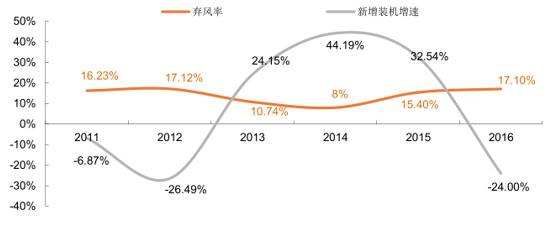 歷年棄風率與行業(yè)新增裝機增速對比
